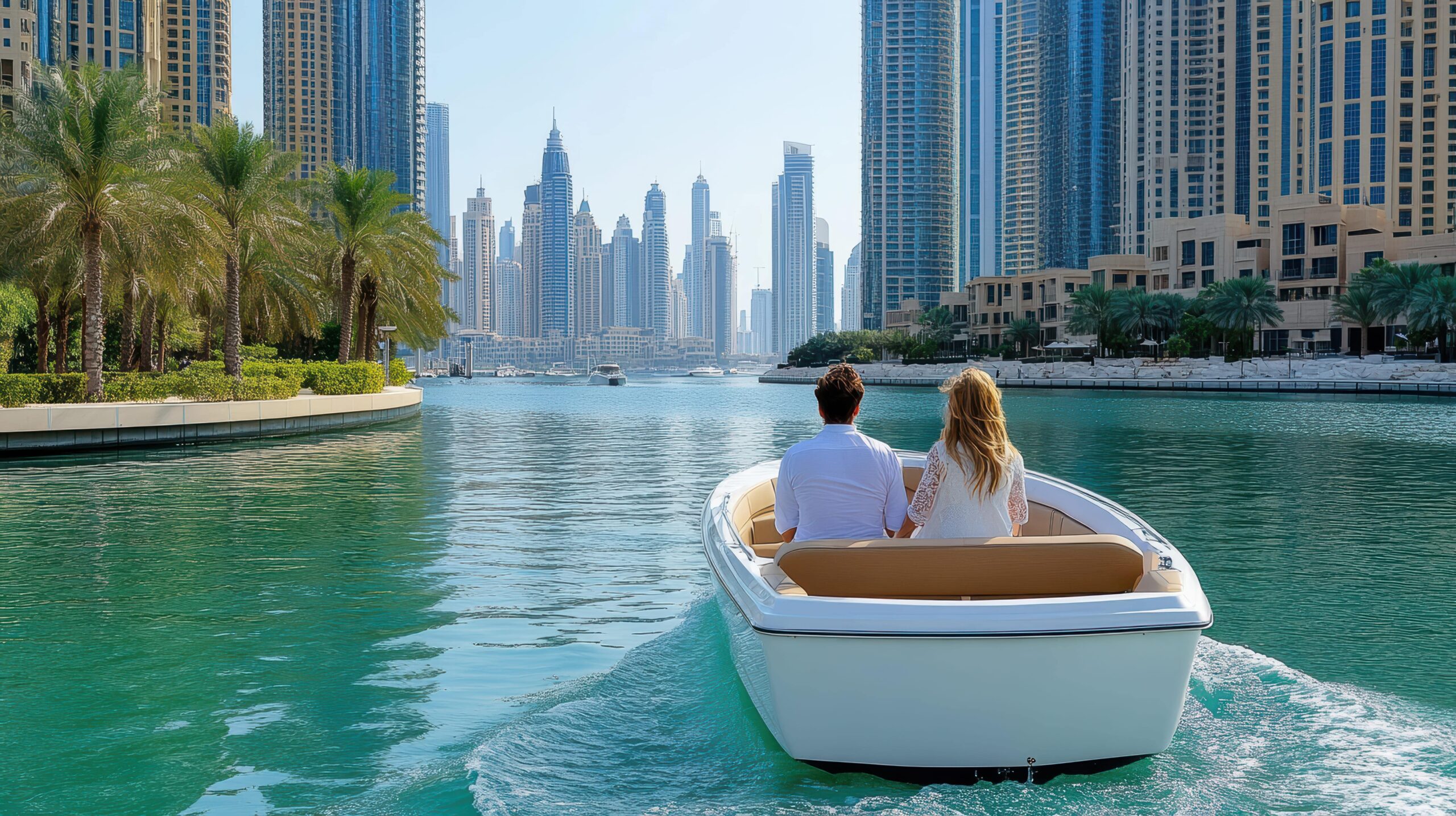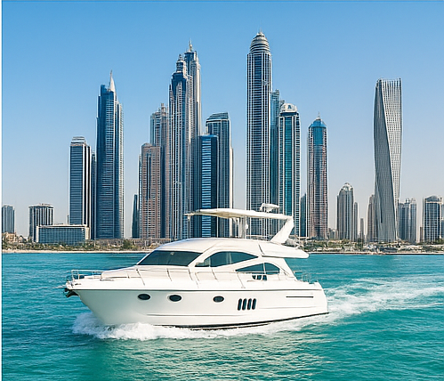 Sail along the stunning Dubai coastline on a luxurious yacht. Enjoy breathtaking views of the city skyline, including the Burj Al Arab and Atlantis, The Palm.
