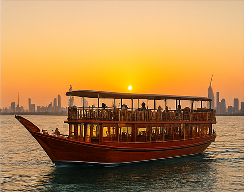 Experience the magic of Dubai Creek or Dubai Marina on a traditional dhow cruise. Enjoy a delicious buffet dinner while gliding past illuminated landmarks.